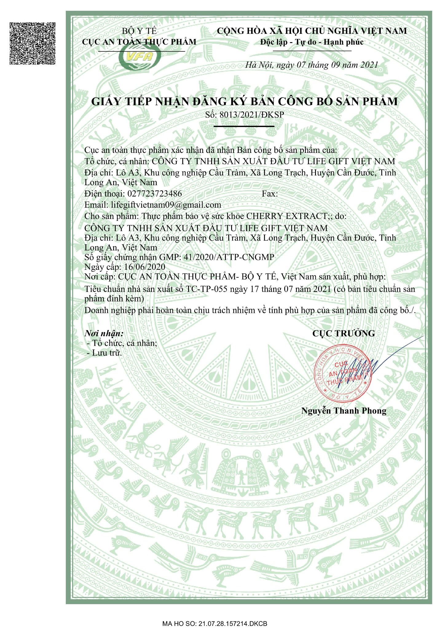 - Cherry extract (Chiết xuất quả anh đào chua): 100mg