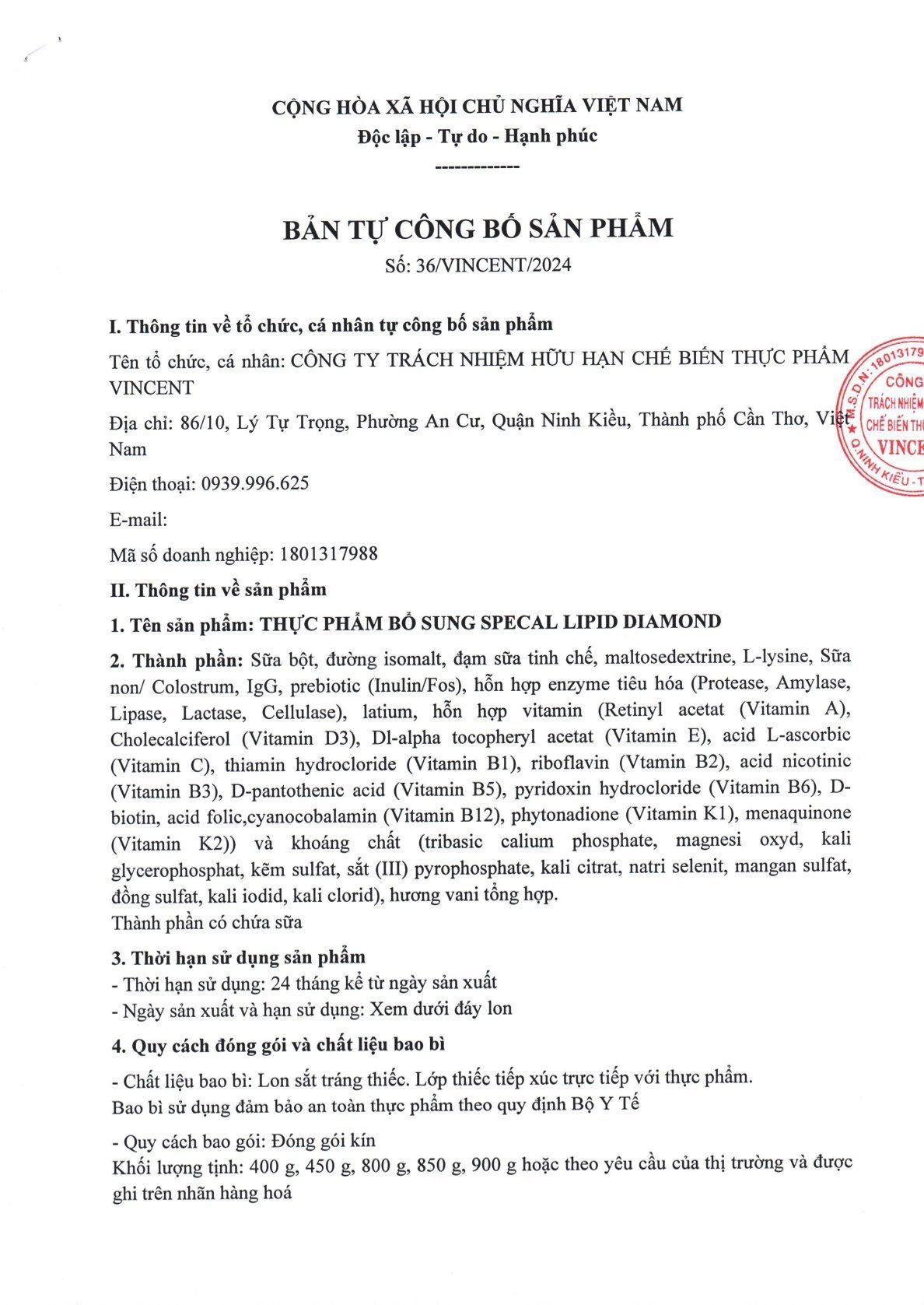 Specal Lipid Diamond - Hỗ trợ nâng cao miễn dịch, cải thiện đề kháng, Hộp 400g