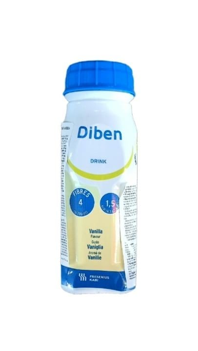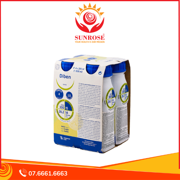 Sữa Diben được dùng để kiểm soát chế độ ăn của bệnh nhân đái tháo đường, cung cấp dinh dưỡng hoàn chỉnh, năng lượng cao (1,5Kcal/ 1ml), 300kcal/ chai 200ml. Sản phẩm có hàm lượng protein cao và hàm lượng acid béo không bão hòa đơn, cùng tinh bột biến tính với chỉ số glycernic thấp kèm theo chất xơ dùng để kiểm soát chế độ ăn của bệnh nhân suy dinh dưỡng.