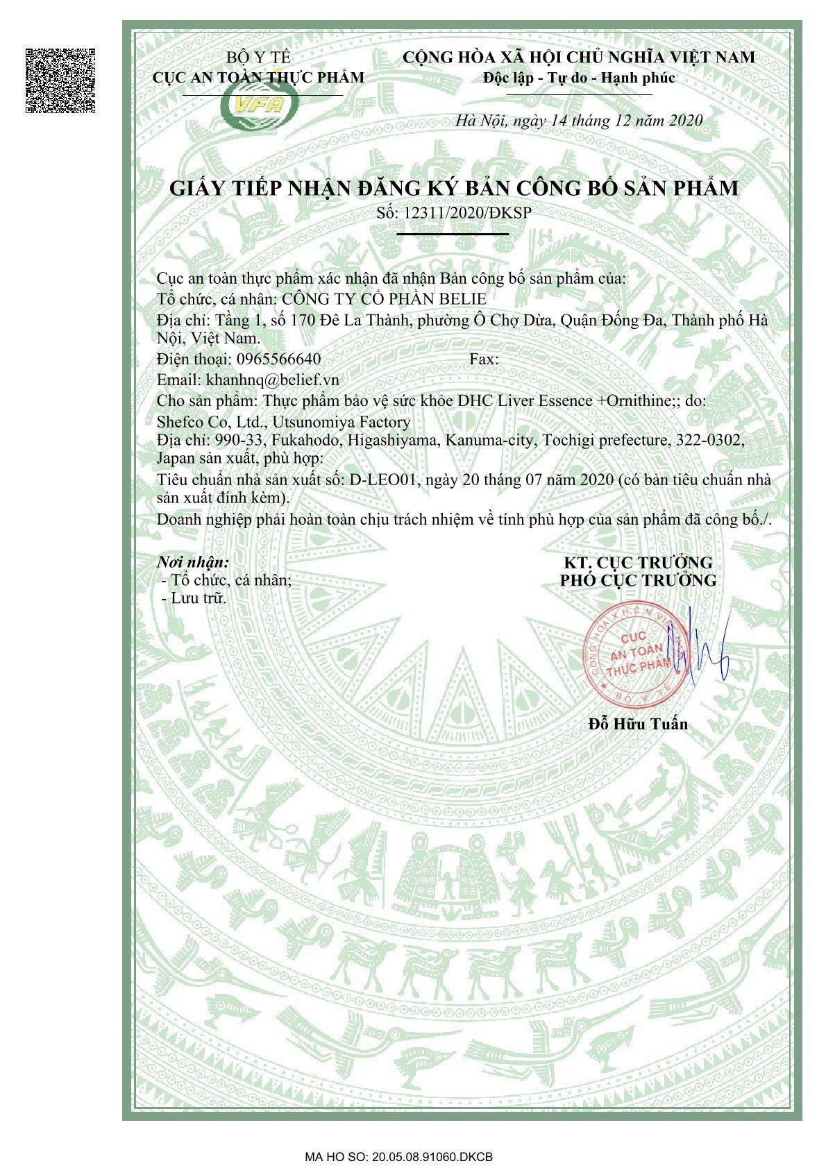 - Chiết xuất gan lợn: 200mg, ornithine hydrochorid: 40mg, chiết xuất nấm men bia (saccharomyces cerevisiae) chứa kẽm: 20mg (tương đương kẽm: 2mg).