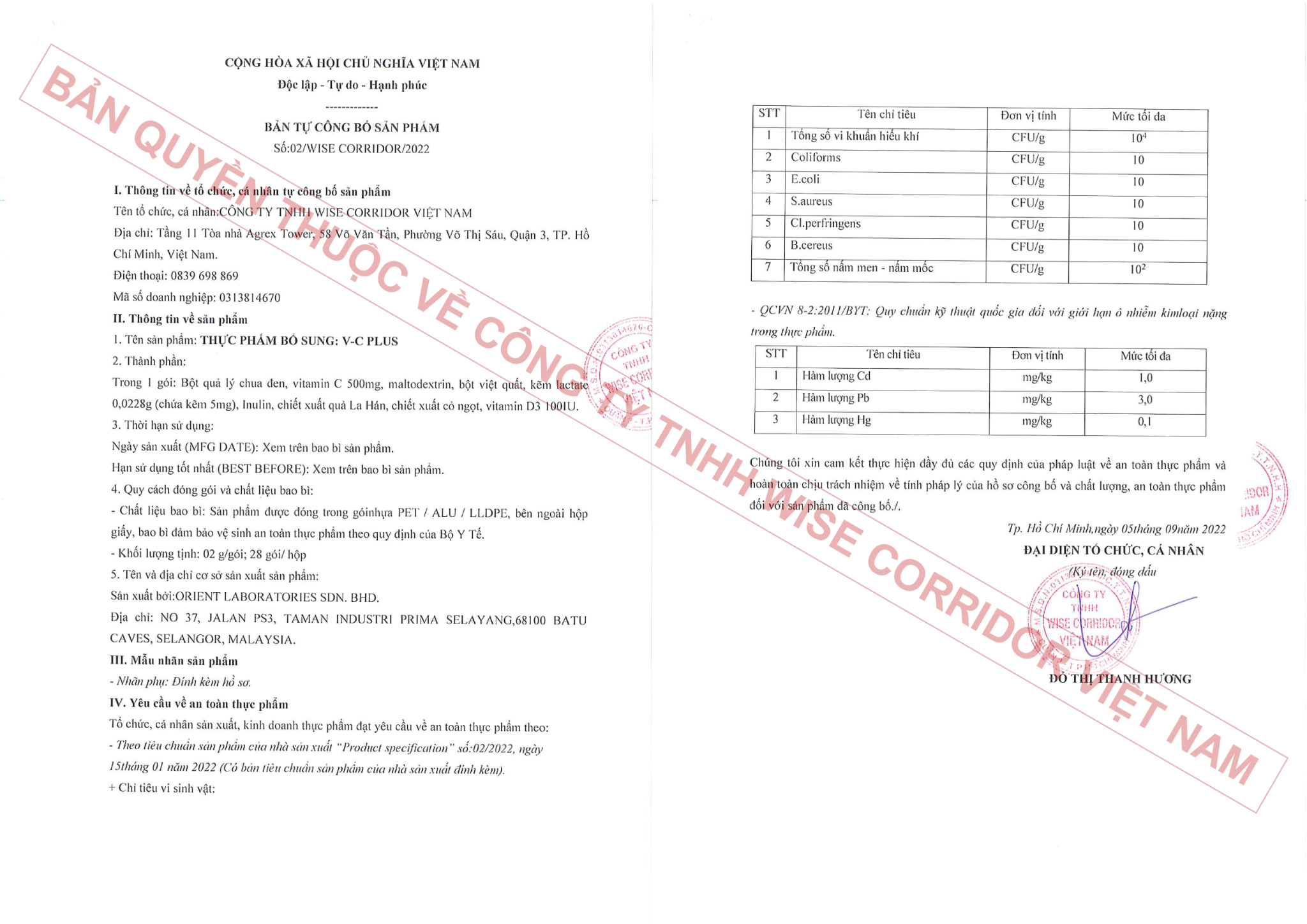 Thành phần: Trong 1 gói: Bột quả lý chua đen, vitamin C 500mg, maltodextrin, bột